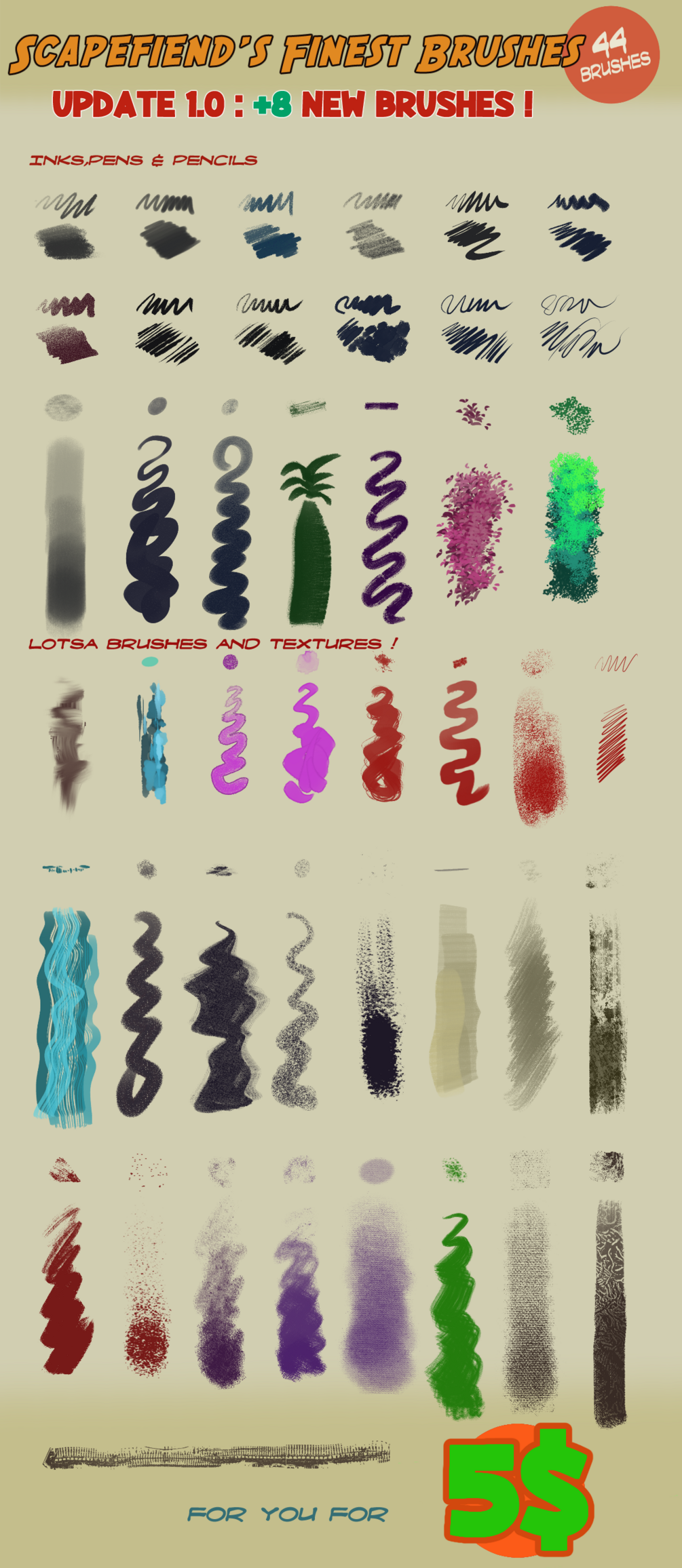 I've added 8 new brushes to this pack as a way to THANK EVERYBODY who bought it ! If you enjoy them don't forget to this ! Also if you have brush requests let me know !